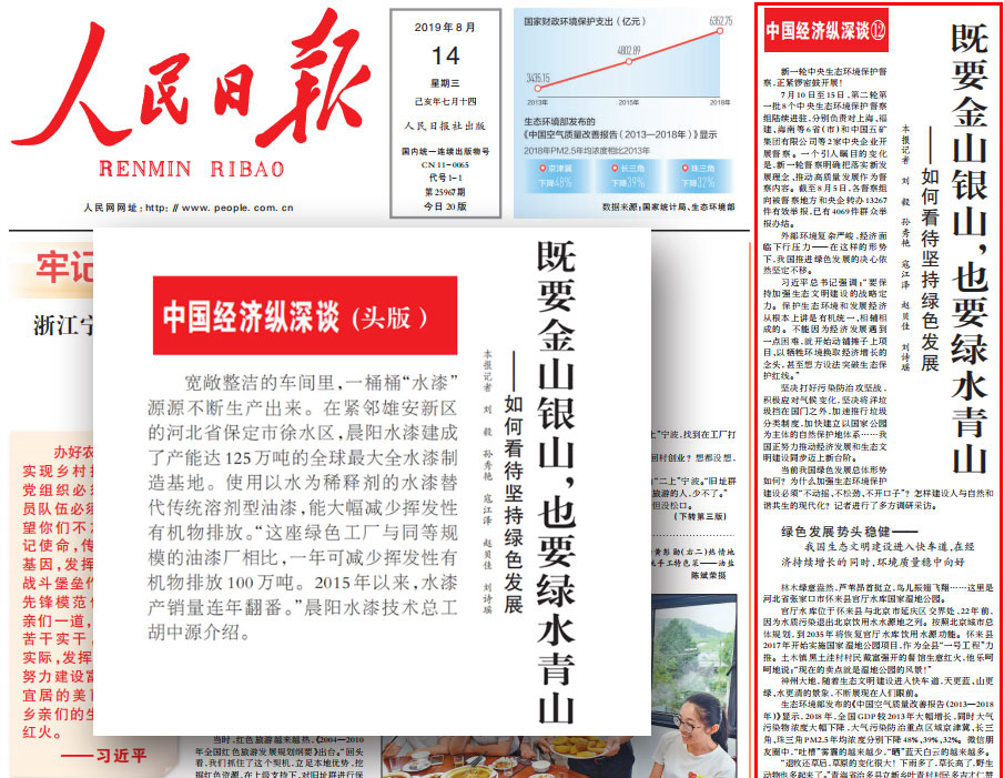 人民日報2019年8月14日署名文章:“中國經(jīng)濟縱深談”系列述評之十二:既要金山銀山,也要綠水青山